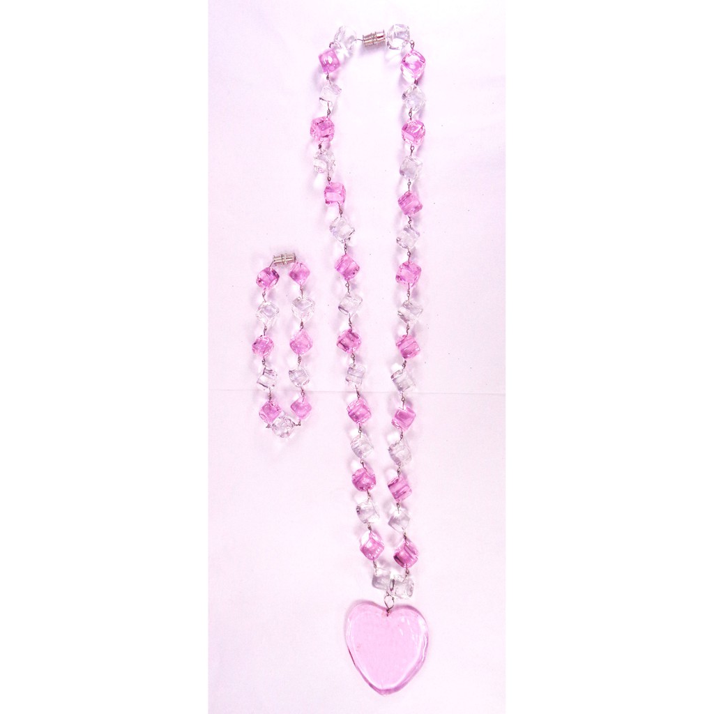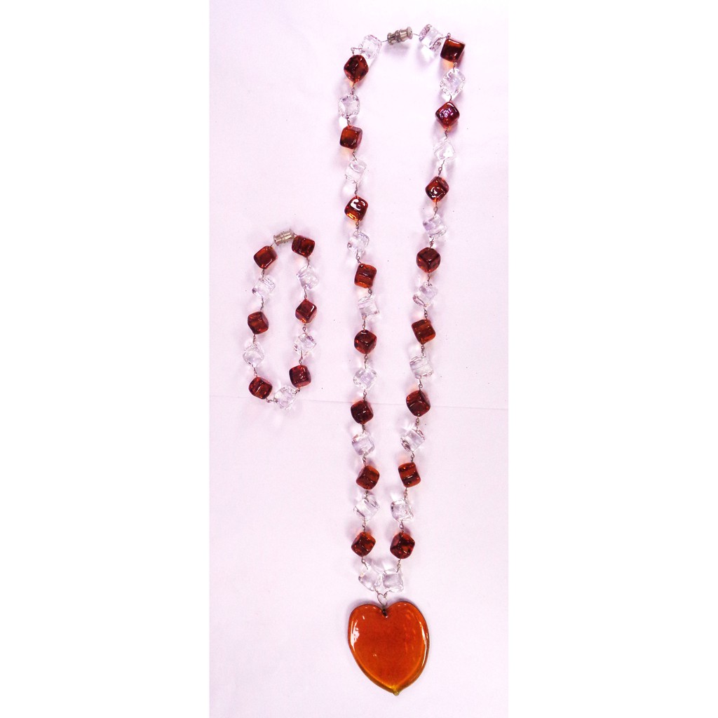 GLASS SOLID HEART PENDANT W/ GLASS DICE NECKLACE & BRACELET SET