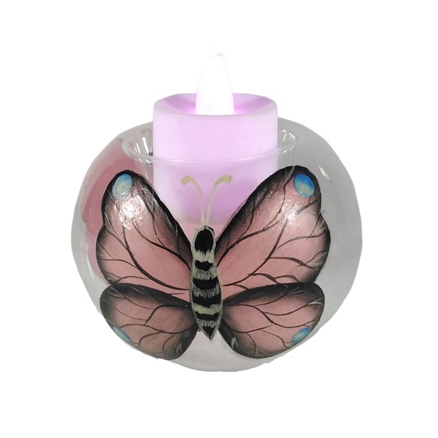 Handpainted Butterfly Glass Tealight Candle Holder 6pc 3.5″ GTL 7133