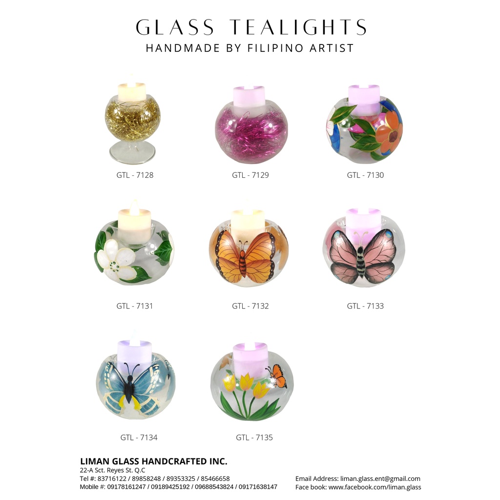 Package contains: 6pc Handpainted Glass Tealight Candle Holder, battery operated tealights are included