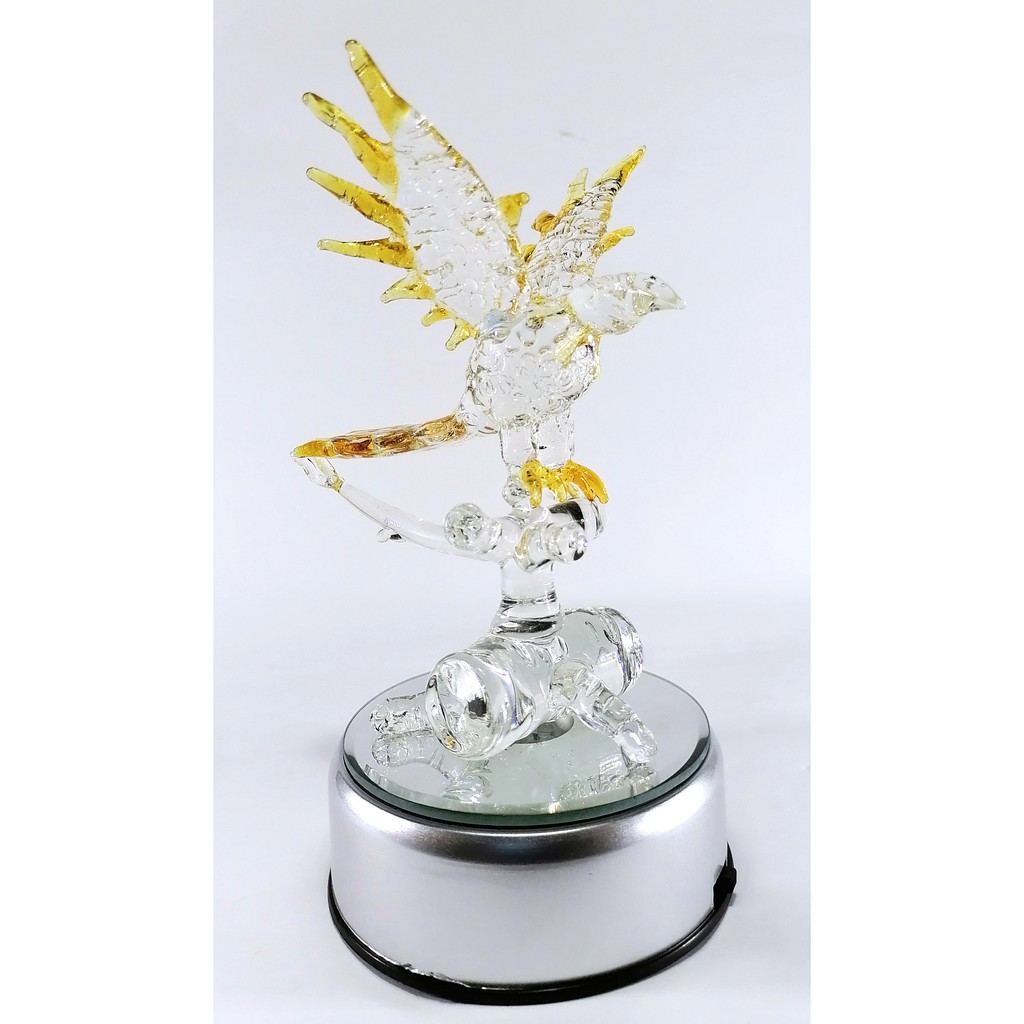 Philippine Blue Eagle Glass Figurine with Rotating Base and LED Lights Home Decoration (Yellow)