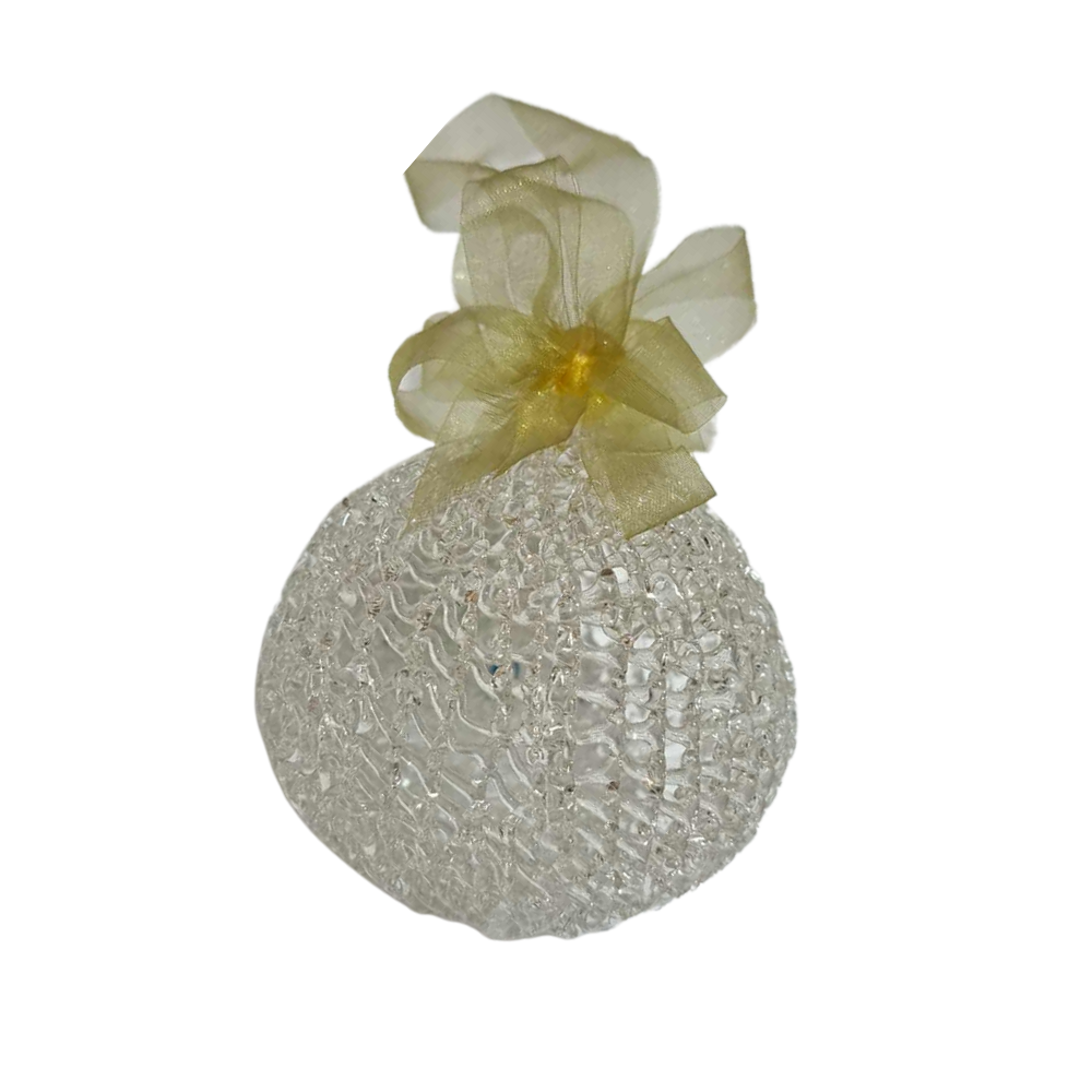 Handmade by a Filipino artist, these Clear Glass Ornaments bring timeless beauty and elegance to holiday décor. Each piece is delicately hand-shaped from glass and adorned with a shimmering gold ribbon, symbolizing warmth, celebration, and festive joy.